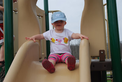 After Mommy and Daddy got back from a weekend at Viginia Beach where Mommy ran a half marathon with her friends, Mommy took a day off for some girl bonding time!! First stop the Park. Zoey had a blast on the slide and the swings.
