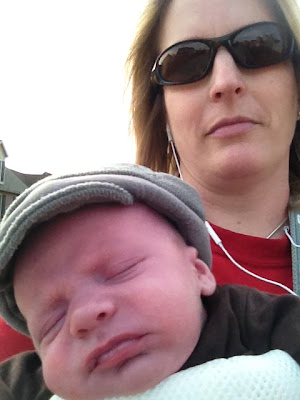 It was a nice winter day in WV, so Mommy decided to go for a walk. I put little man in the Baby Bjorn and he made it about 5 steps before he conked out! Too bad he doesn't do that when he is in his crib so Mommy can nap :-)